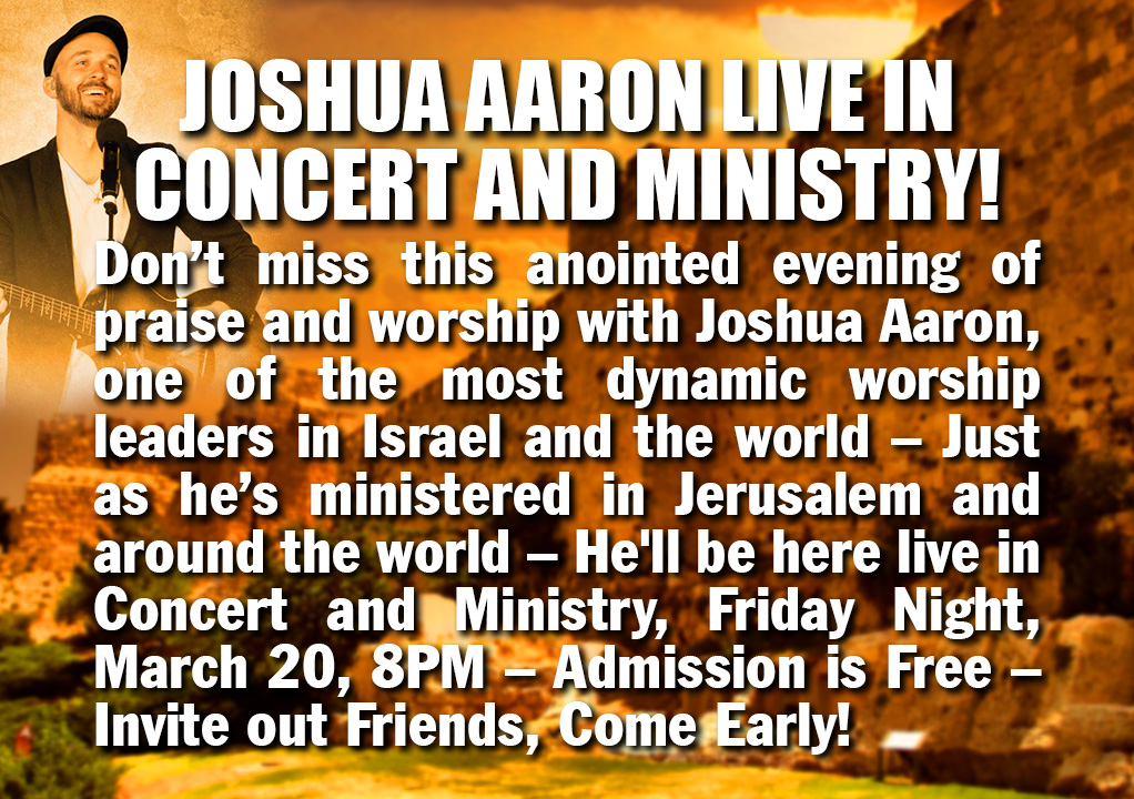 The Friday Night Pre-Service Prayer Meeting this Friday 7PM (to 7:50PM) In the Fireplace Room - Even if you come after 7PM you can join in. (Special Prayer Focus: Israel, America, revival, President Trump, protection for Rabbi Jonathan, Renata and family, BI, HOW, Compassion Projects, leaders, protection for the building, for the congregation, for the Holy Spirt to be poured out and for God’s power to be manifested- with the book Avatar going forth – also for power and protection against all attacks – and God’s purposes in America and the world. - Scripture focus- 2 Chronicles 7:14).