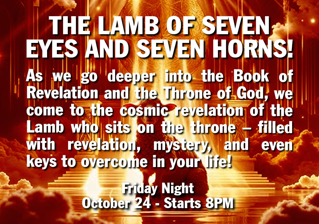 The Friday Night Pre-Service Prayer Meeting this Friday 7PM (to 7:50PM) In the Prayer Room - Even if you come after 7PM you can join in. (Special Prayer Focus: Israel, America, revival, President Trump, protection for Rabbi Jonathan, Renata and family, BI, HOW, Compassion Projects, leaders, protection for the building, for the congregation, for the Holy Spirt to be poured out and for God’s power to be manifested- with the book Avatar going forth – also for power and protection against all attacks – and God’s purposes in America and the world. - Scripture focus- 2 Chronicles 7:14).