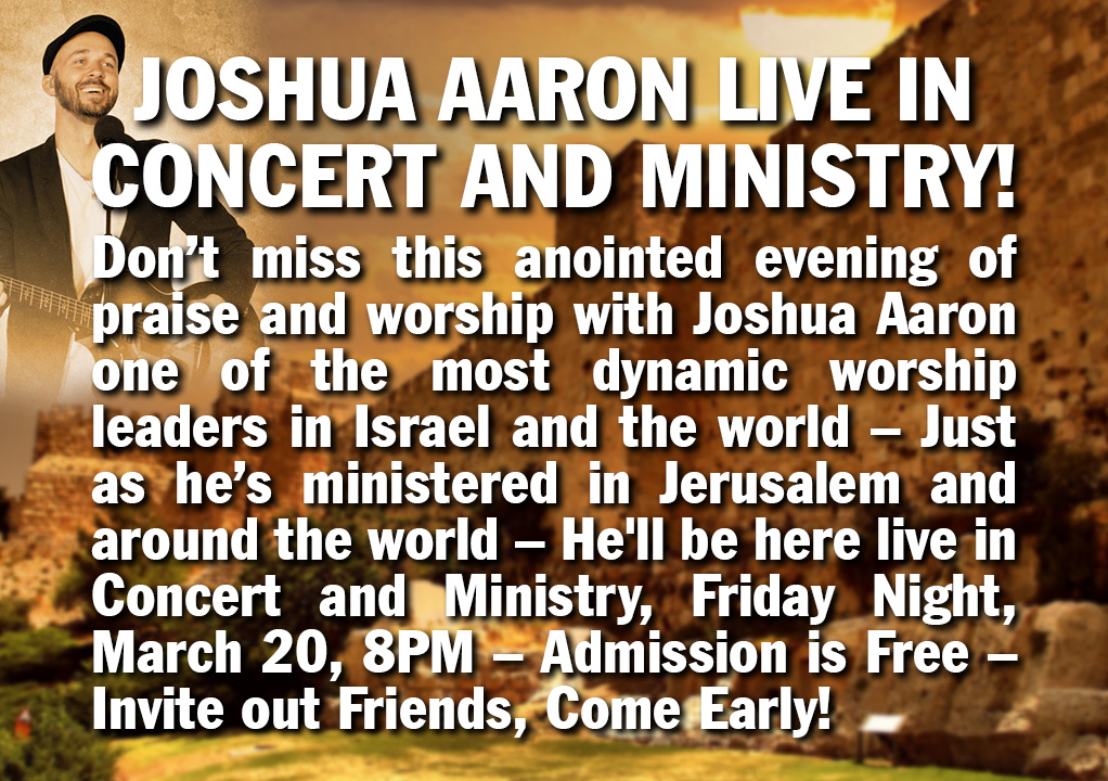 The Sunday Morning Pre-Service Prayer Meeting this Sunday 9AM (to 9:50AM) - in the Prayer Room - Even if you come after 9AM you can join in. (Special Prayer Focus: Israel, America, revival, President Trump and his Cabinet, Benjamin Netanyahu, protection for Rabbi Jonathan, Renata and family, BI, HOW, leaders, protection for the building, for the congregation, for the Holy Spirt to be poured out, healing in the body, and for God’s power to be manifested - with the book Avatar going forth – also for power and protection against all attacks – and God’s purposes in America and the world. - Scripture focus - 2 Chronicles 7:14).